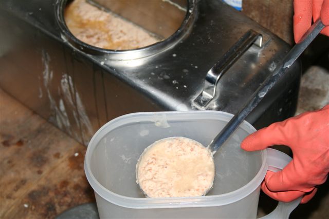 Das Jungbier wird in den Kühlbottich gepumpt. Die beim Prozess abgefüllte Speise wird jetzt zugegeben und mit frischer Hefe versetzt. Im Kühlbottich wird das Bier auf 1 °C gekühlt.